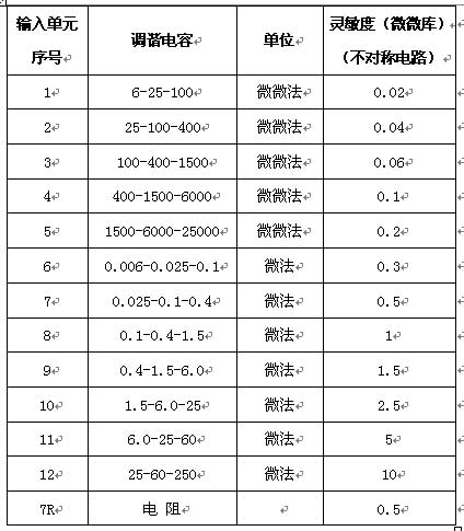 1.可测试品的电容量范围6pF--250μF